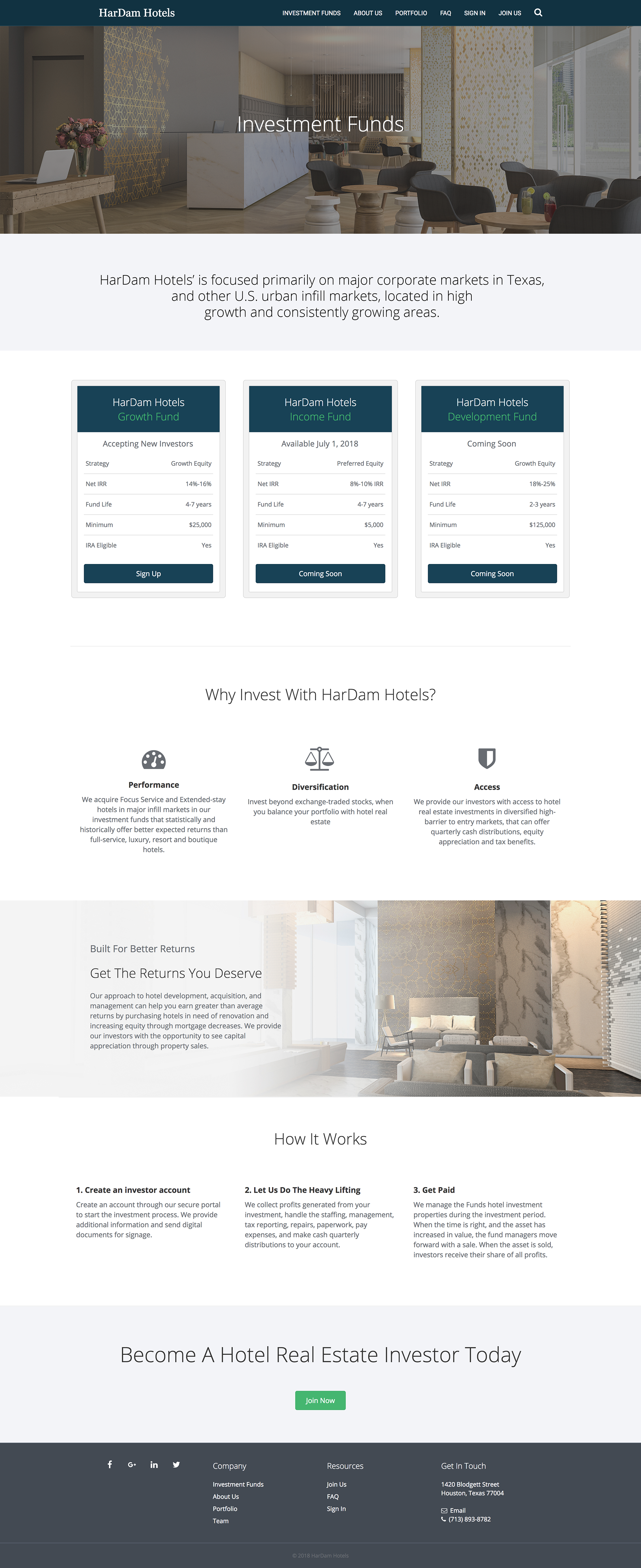 This rebrand, design, and development was done for a hotel looking to raise capital to expand.